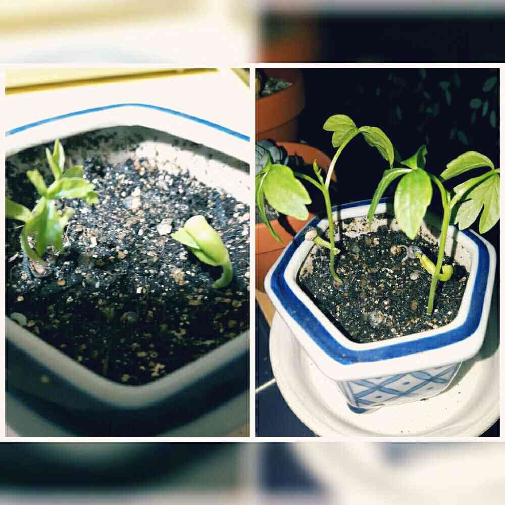 風船かずら。左が2月3日の。右が今日の。いつかでこんなに伸びました。そして、まだ芽が出てなかった種二つも出てきました。早いなぁ。