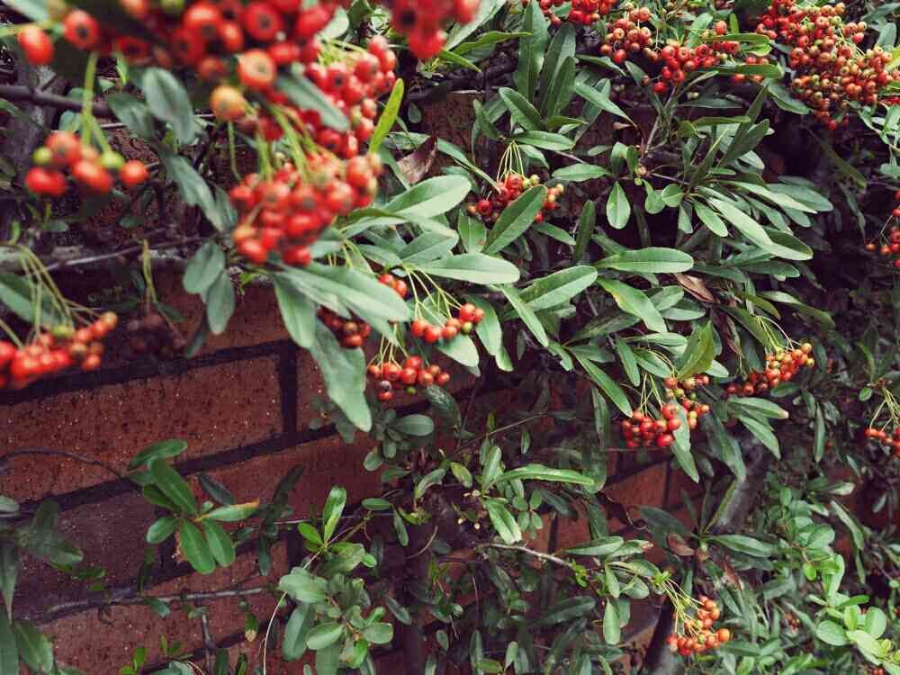 レンガとピラカンサの落ち着いた赤に秋を感じます🍁🍂