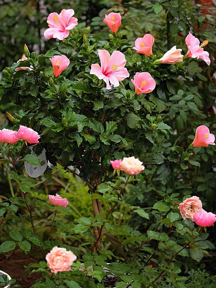 ハイビスカス🌺とバラ🌹、全然違和感なくマッチしてますね🎶