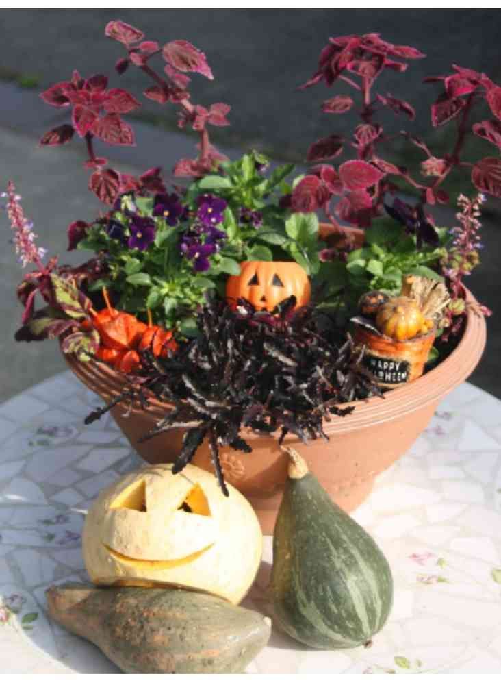 ハロウィンバージョンの寄せ植え素敵ですね🎃カボチャの製作は、Qooさんですよね、上手くできてますね😊