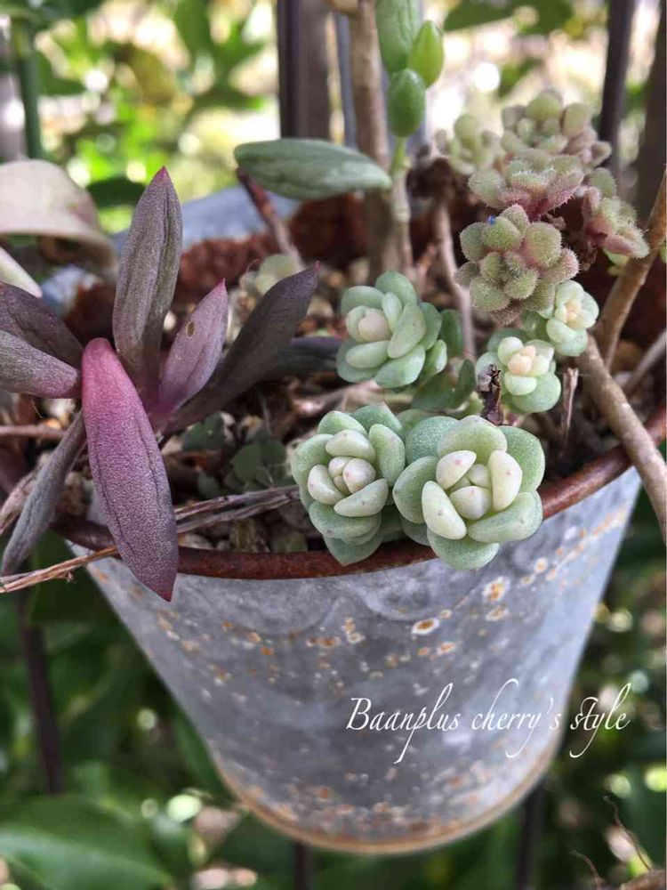 リアルなサビが良い感じのブリキにパープルとグリーンが映えます❤