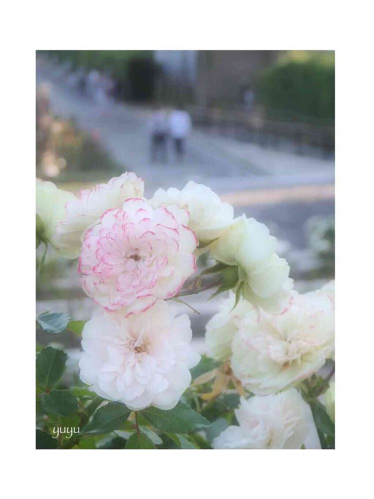 小さな小さな可愛い薔薇さんで、同じ株に淡いグリーンの子や淡いピンクの子、そしてピンクの縁取りの子が咲いていました (*ฅ́˘ฅ̀*)♡︎