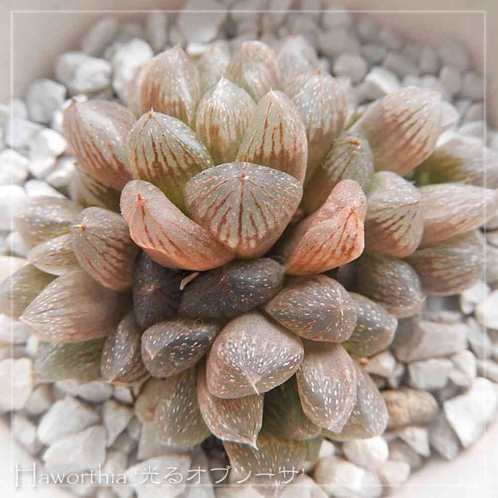 ハオルチア、光るオブツーサ。暑くても寒くても赤くなるんだけど、この冬は赤いというより茶色い?