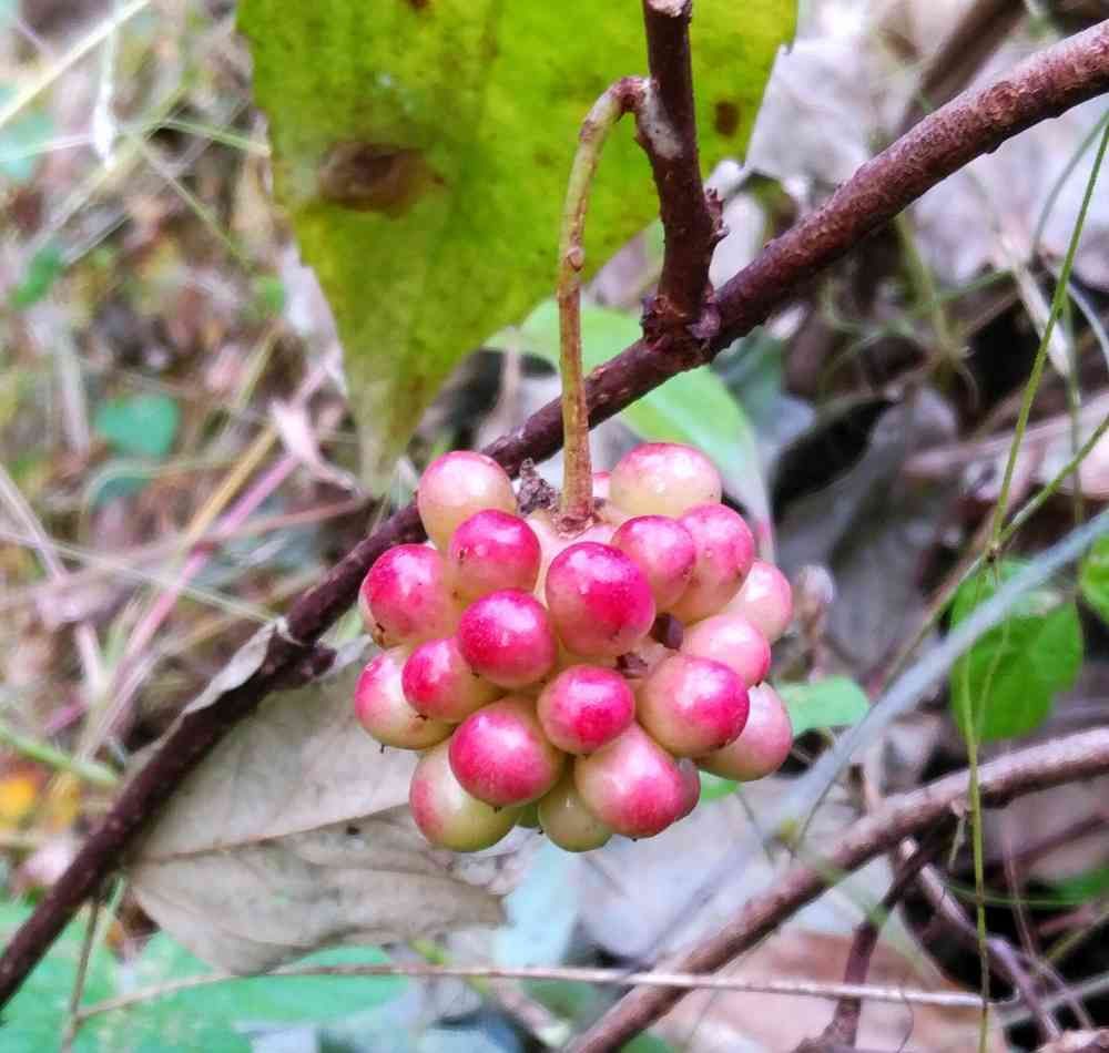 ビナンカズラの実が、ほんのり色付いてました