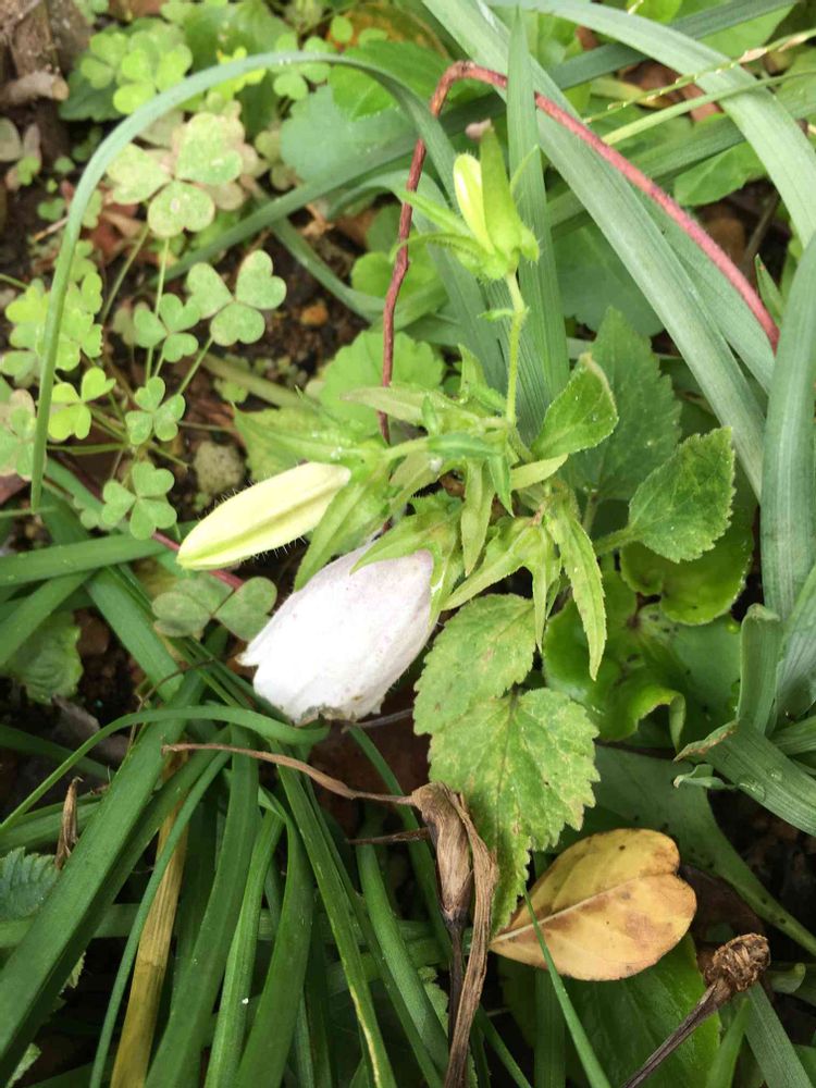 地面につく感じで低い所で咲いてます❣️しかも花びらの先端がかじられてる😅💦