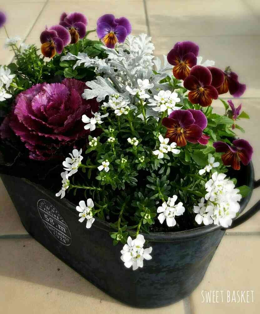 真っ白なイベリスとアンティークカラーのビオラの組み合わせが好きなの~😊💕