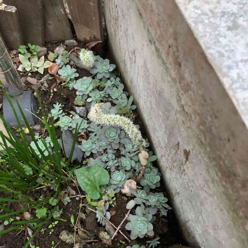 旦那様がを隣に地植えしたのできゅうくつそうです😅植え替えすればいいんだが子持ち蓮華さんに合う場所がなかなかなくて😅ごめんよ😅