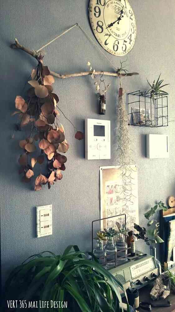 壁をグレーに塗ったのでドライやエアープランツがシックに馴染む空間になりました♡
