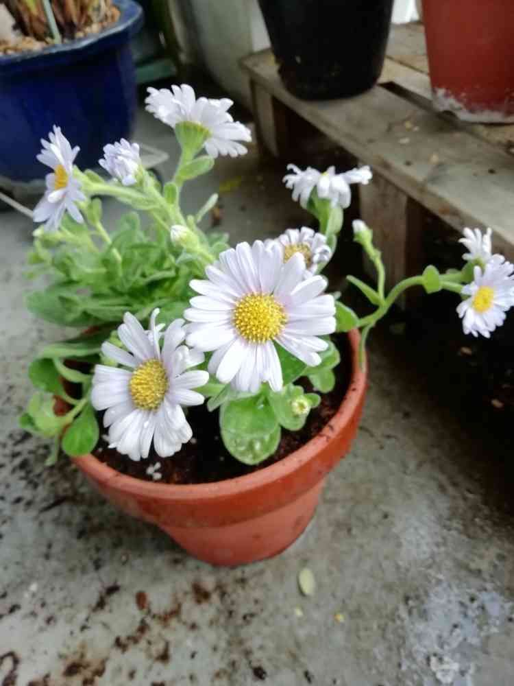 スーパーの店先で、ひとつ残ってた"だるま菊"淡い薄紫に、