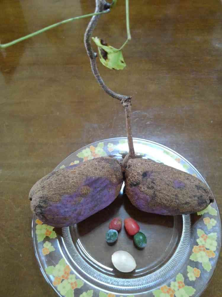 あけび、いぬまきのみ、ぎんなんを頂いた。マキの実は、昔小僧と聞いたが、調べても分からなかった。方言かな?ご存知の方、教えて!