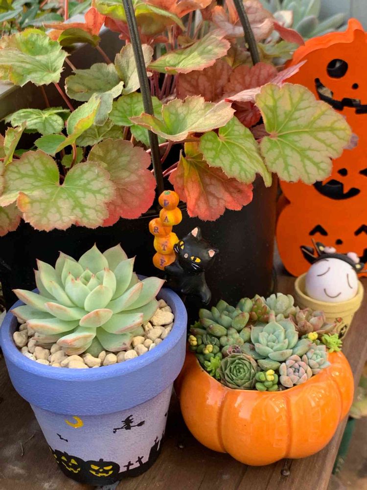 小物からグリーンまで全部かわいい💕ヒューケラの色もハロウィンにぴったり🎶