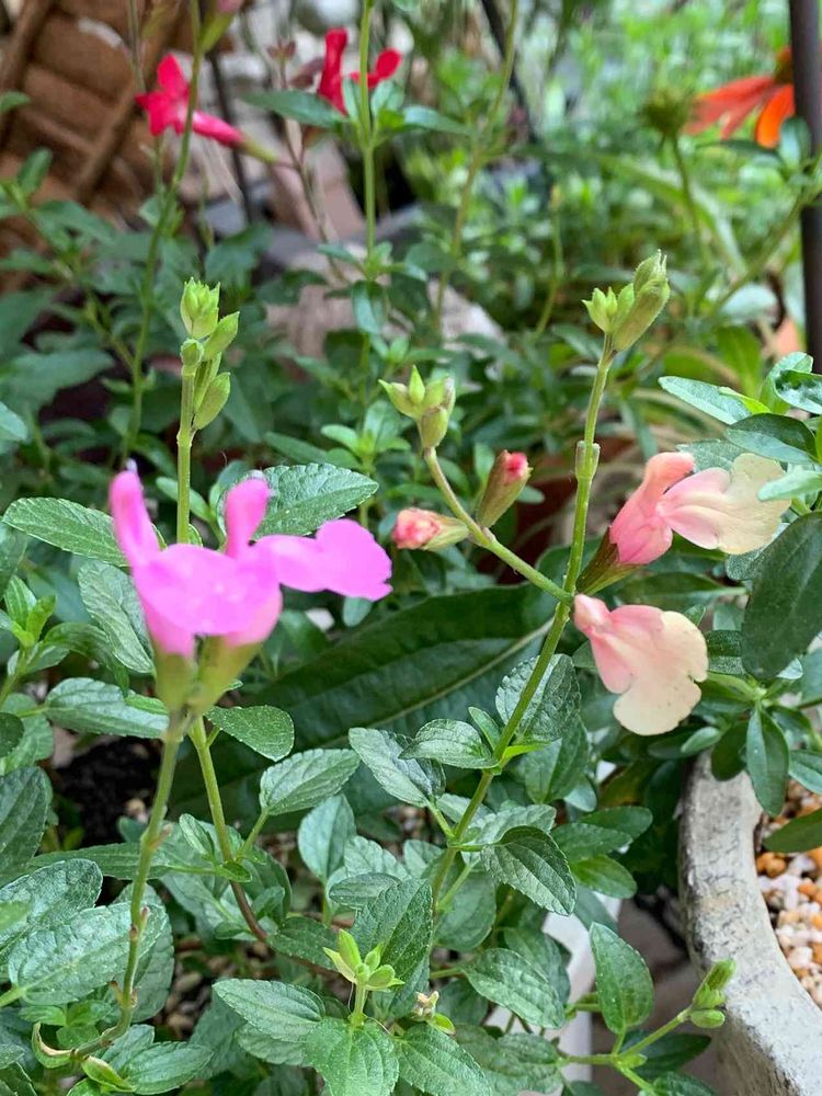 チェリーセージって、気温で色が変わりませんか?我が家のチェリーセージは、夏は赤色で冬は白になりますよ(笑)本当は、赤と白のホットリップスなんですけど😂