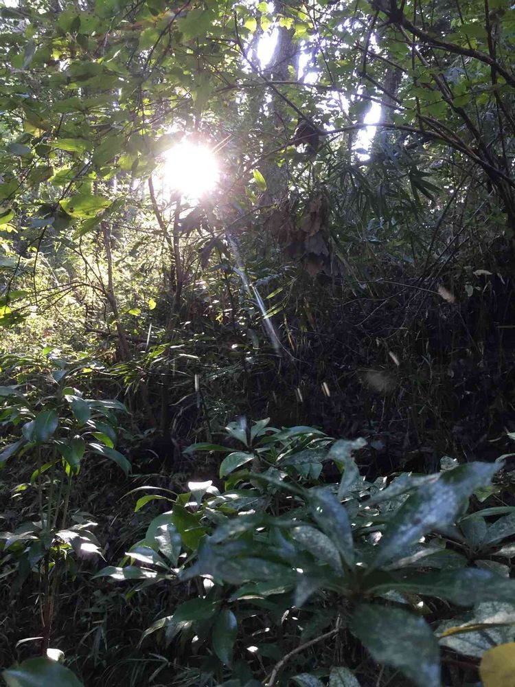 クモの巣🕸を見つけて写真を撮ろうとしたら🤳木漏れ日がさしました。