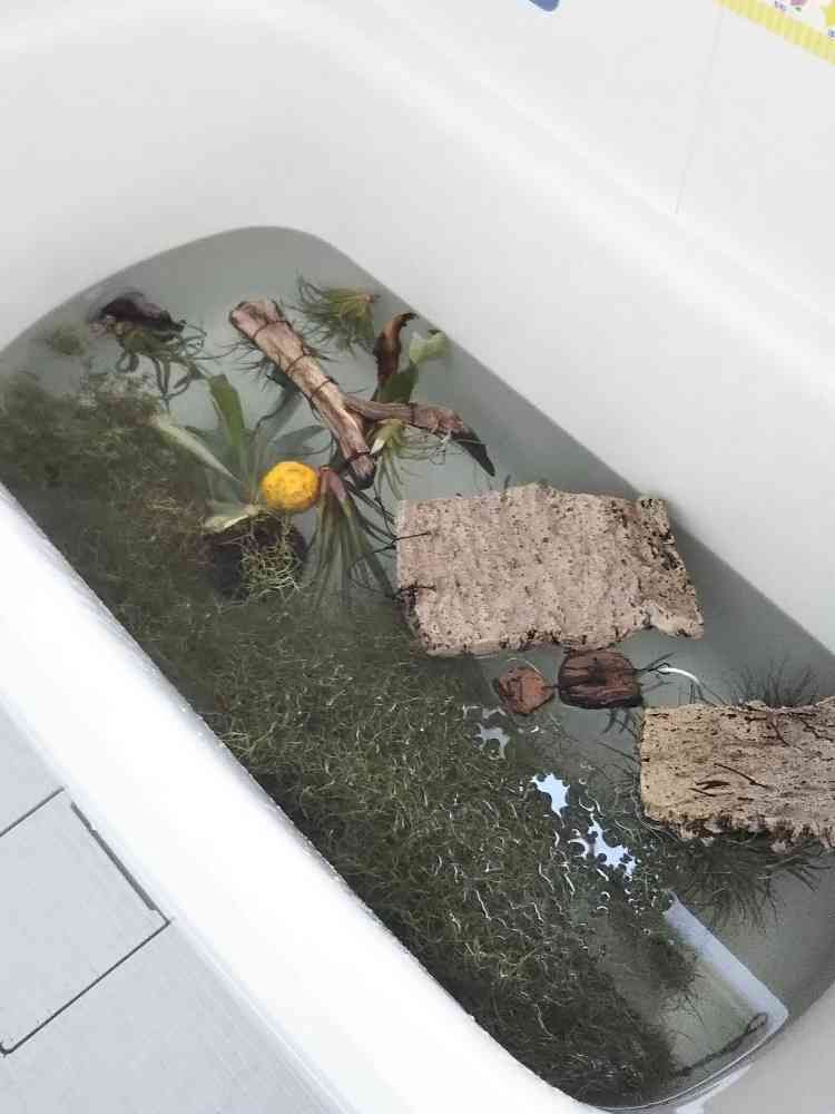 夜にやった方がプランツたちにはいいんだろうけど水が冷たいと弱りそうだし、残り湯が朝だとちょうどぬるくて良さそうだし、この時期ならお湯も臭くない(え…)!