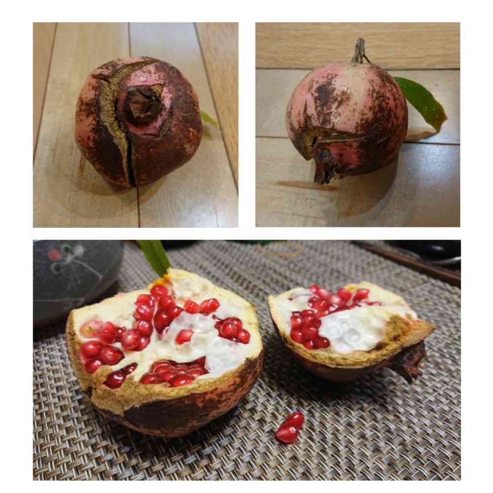 生家の庭の石榴が割れて来ました。「一緒に帰りたい❗」って言うもんで連れて来ました😁。