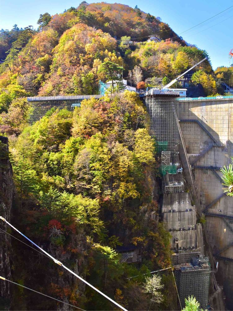 ダムは両岸の壁の補強中でダムの上に入れませんでした。超高い足場が組んであるけど、パイプだよパイプ!怖ぇ〜😱