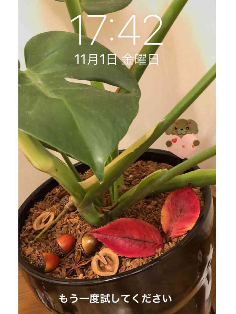 モンステラの鉢に ドングリ🍂🍁🌰可愛いねー🎵