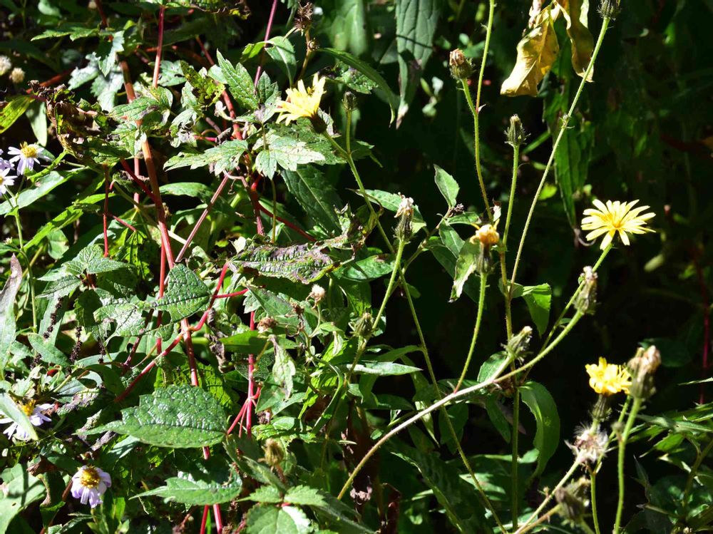 雑草の中にハナニガナとノギクが🌼