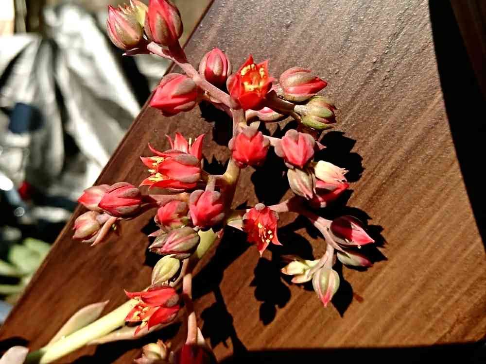 黒い多肉ちゃんに、赤い花が咲くのは綺麗ですね♪(//∇//)