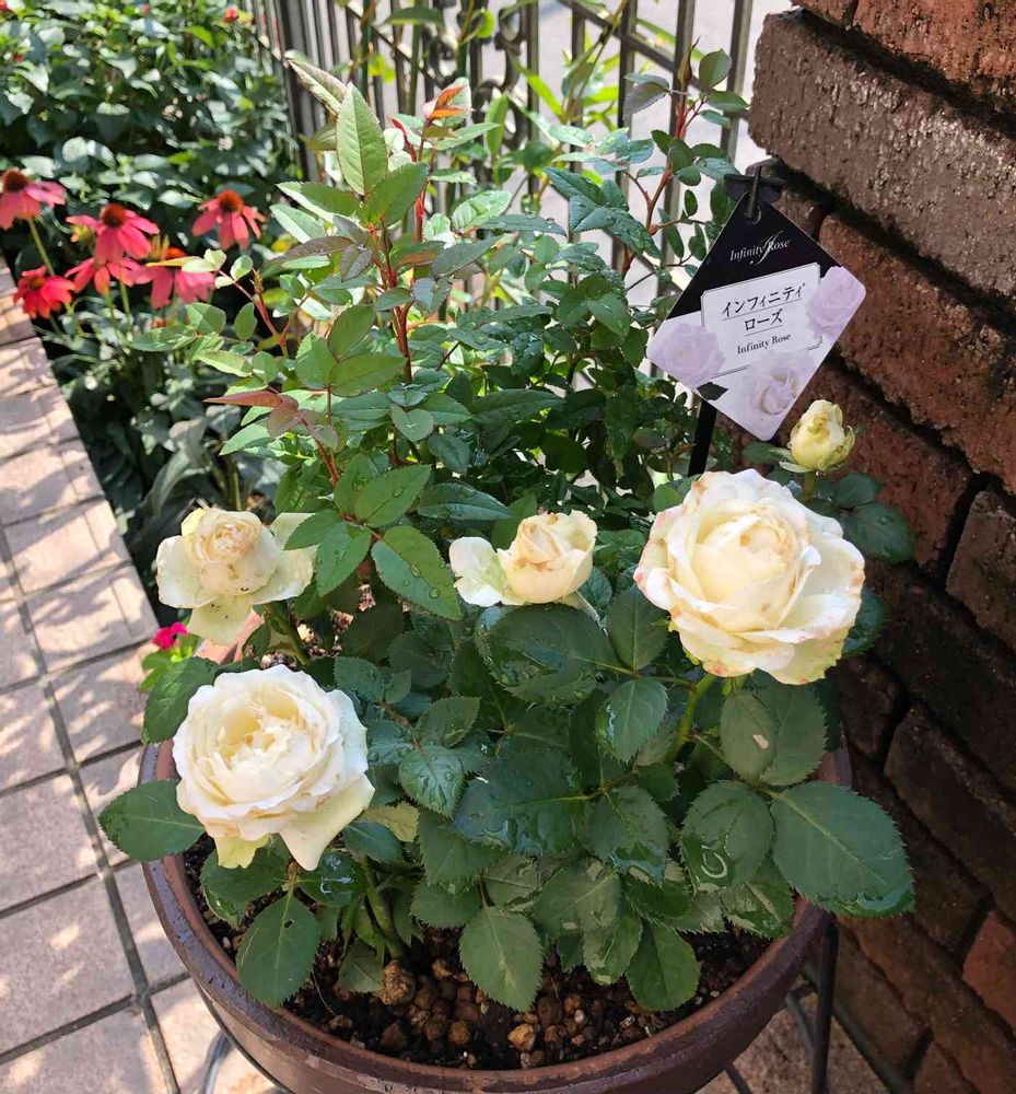 ミニバラを2種類植えてみました。手前の白いのがインフィニティローズです💓