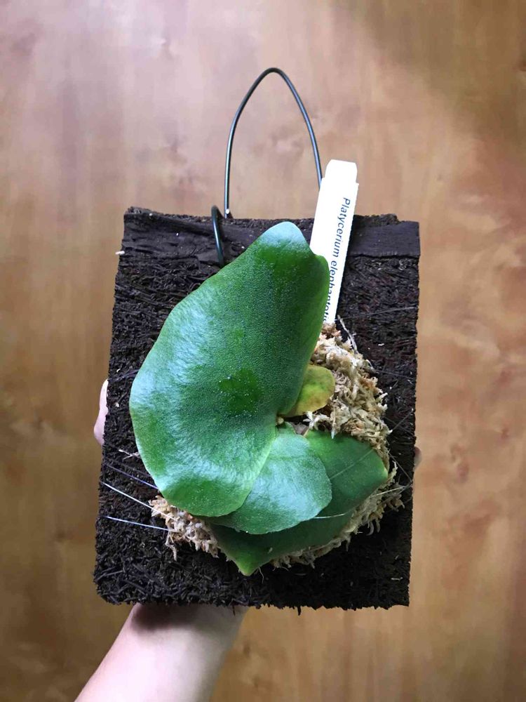 先週、高橋園芸さんとこで買ったエレファントをヘゴ板に張り付けました。