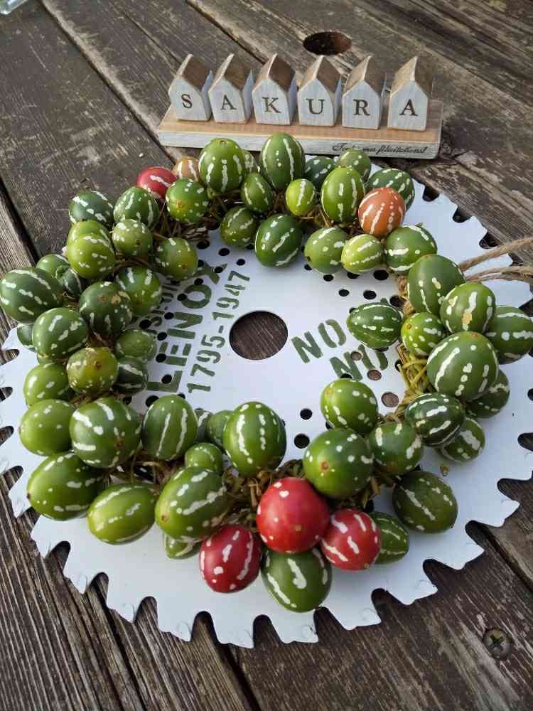 オキナワスズメウリまだリース出来たて😁なので、色が変化❤💚❤💚して行くの楽しみです🤗