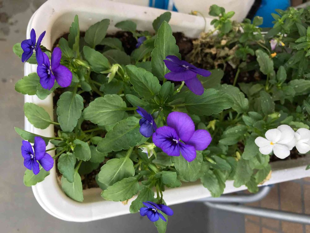 バルコニー/ベランダ,ビオラ ムラサキ シロ,花のある暮らしの投稿画像