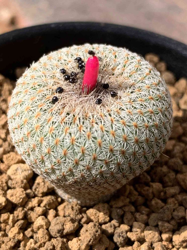 先月、愛好家さんの展示即売会で出会ったサボテン。その時も種が表面に付いていたのですが、また実があがってきてくれるなんて、うれしい〜😆😆😆