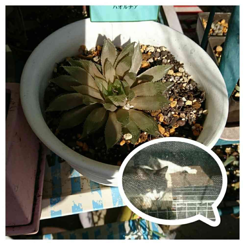 我が家のハオルチア。淡緑でなくこんな感じ。猫ちゃん(ゴマ)はいつも私がベランダに出るとこの位置に寝て様子観察してます。