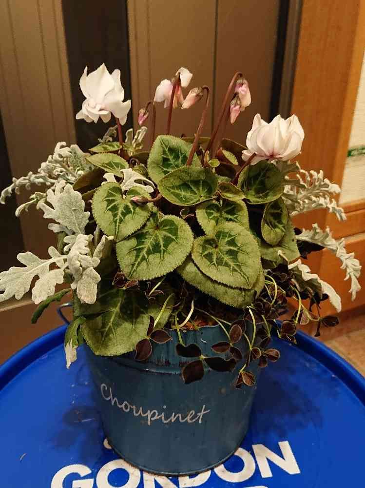 ガーデンシクラメンのギャザリング寄せ植え、難しそうですが、まとまっていますね!