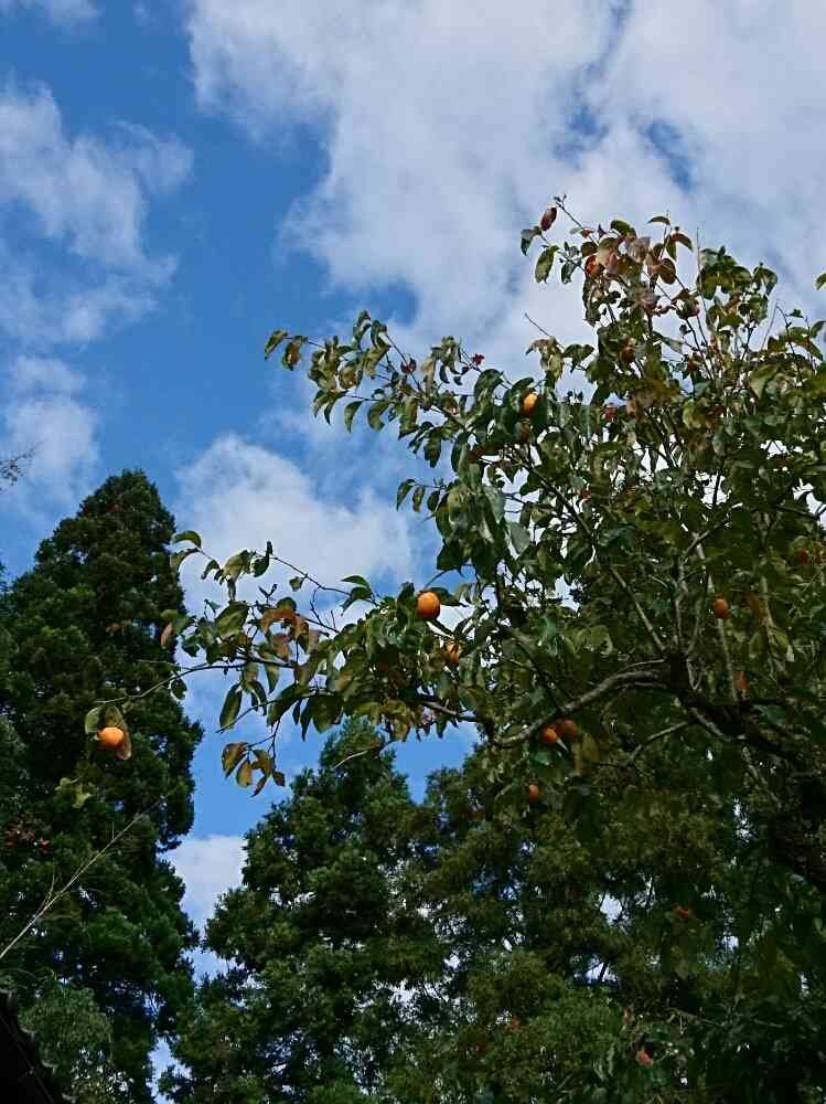 青い空に映える、美味しそうな柿の彩り、素敵な光景ですねー