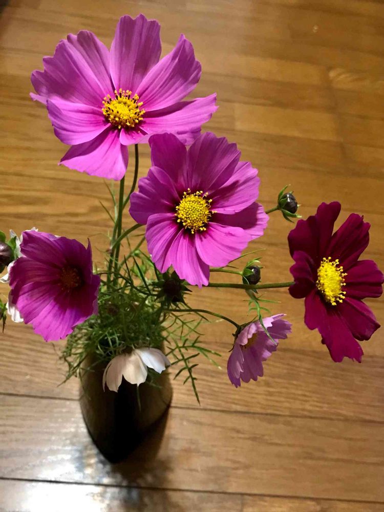 今日、一夜城鎧塚ファームの秋祭りに行ったら、コスモス掴み取りなんかやってまして、ただでいただいてきました😊💕