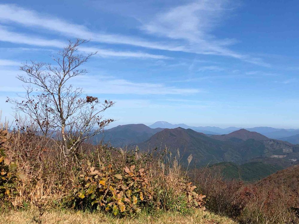 登ってきた牛曳山、伊良谷山の山肌の紅葉も青空に映えて綺麗でした。絶好の紅葉登山日和だったな。
