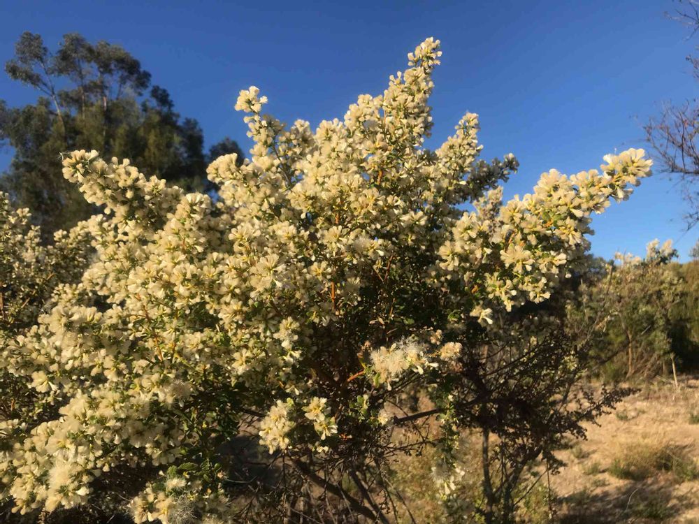 綿毛ふわふわになる前のCoyote Brush。少しだけ綿毛になっているものがありますが、これがなければ綿毛だらけのものと同じ植物と思えません。間違えないGoogle Lens 恐るべし。
