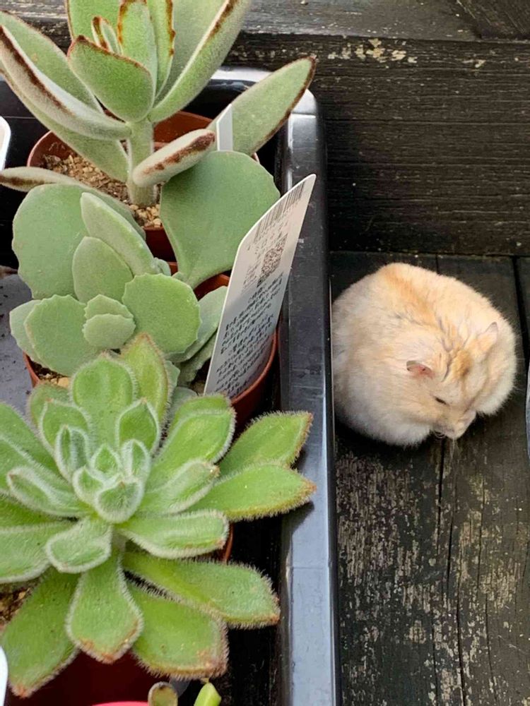 この前のもっち君の相方のマルちゃんです😊タターっとダッシュしてすぐ隅っこに逃げ込んでしまう💧毛繕いをしているところをパチリ✨