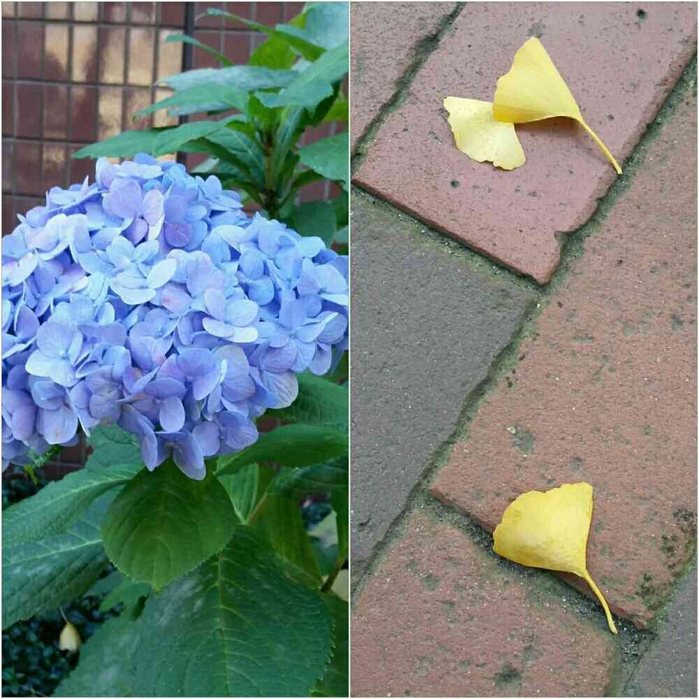 その脇では、秋らしく、いちょうの葉が落ちてました。
