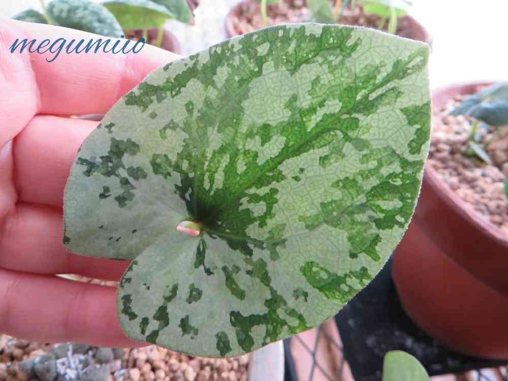 細辛の新品種で白雪(しらゆき)といいます。最近放出し始めて、来年細辛銘鑑に登録予定です。かわいい名前ながら、ガッツリ迷彩柄が気に入ってます。光の下で撮ってみたらラーメンどんぶりのあの模様が・・・・