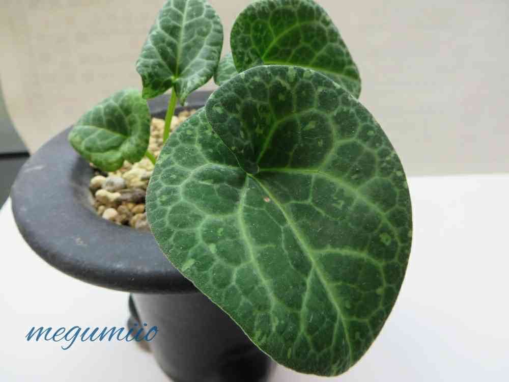 細辛の古い品種で、老いの友(おいのとも)といいます。昔はこの品種の葉っぱ一枚と田んぼ一反で交換されてたそうです。昔のマニアはクレイジーです・・・(-_-;)