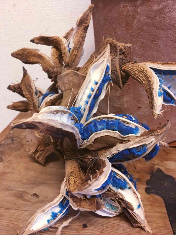 コバルトブルーの種がすごく神秘的な不思議な旅人の木の実です。