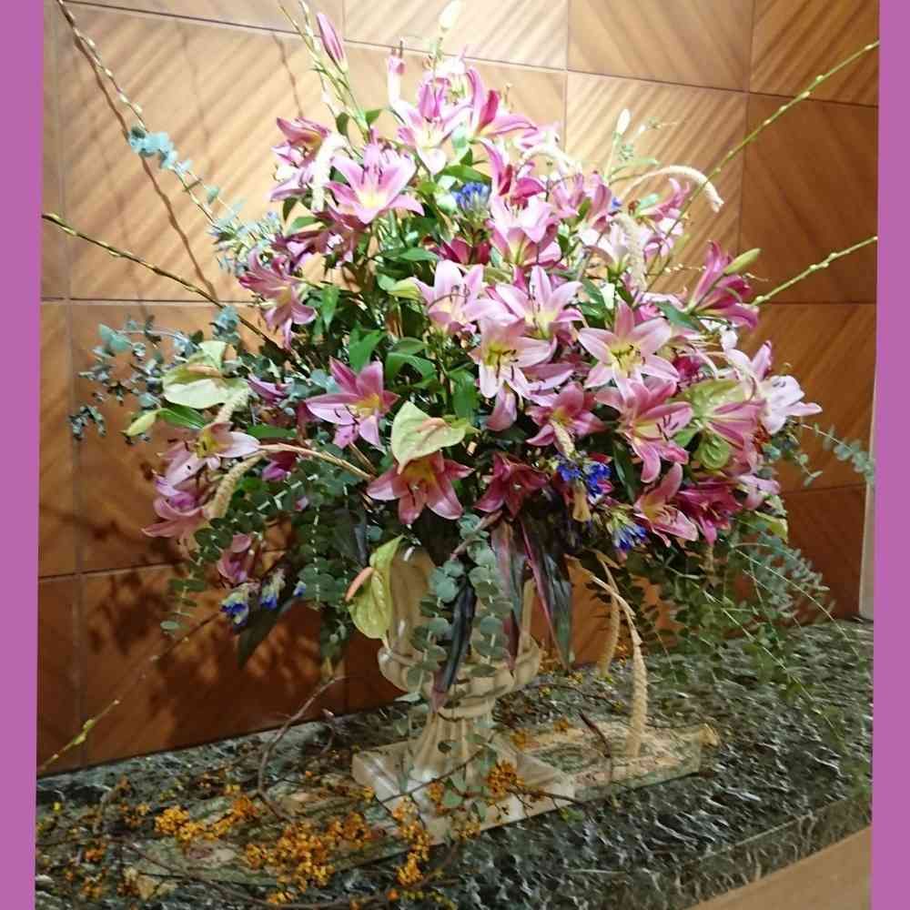エントランスにこんなステキな生け花があるホテルで女子会だったのね❣️