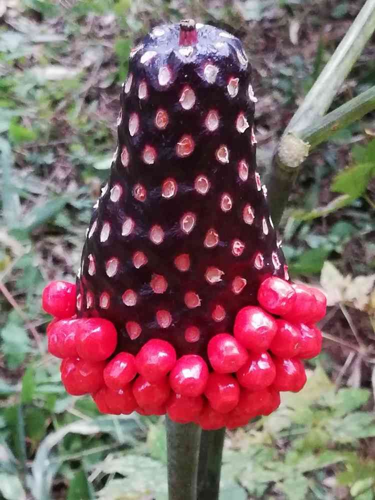 マムシグサって言うのですか?初めて見ました😵 なんとも可愛らしいというか変わった植物ですね。連投で載せていただいて変化の様子が見れて良かったです。🤗💓