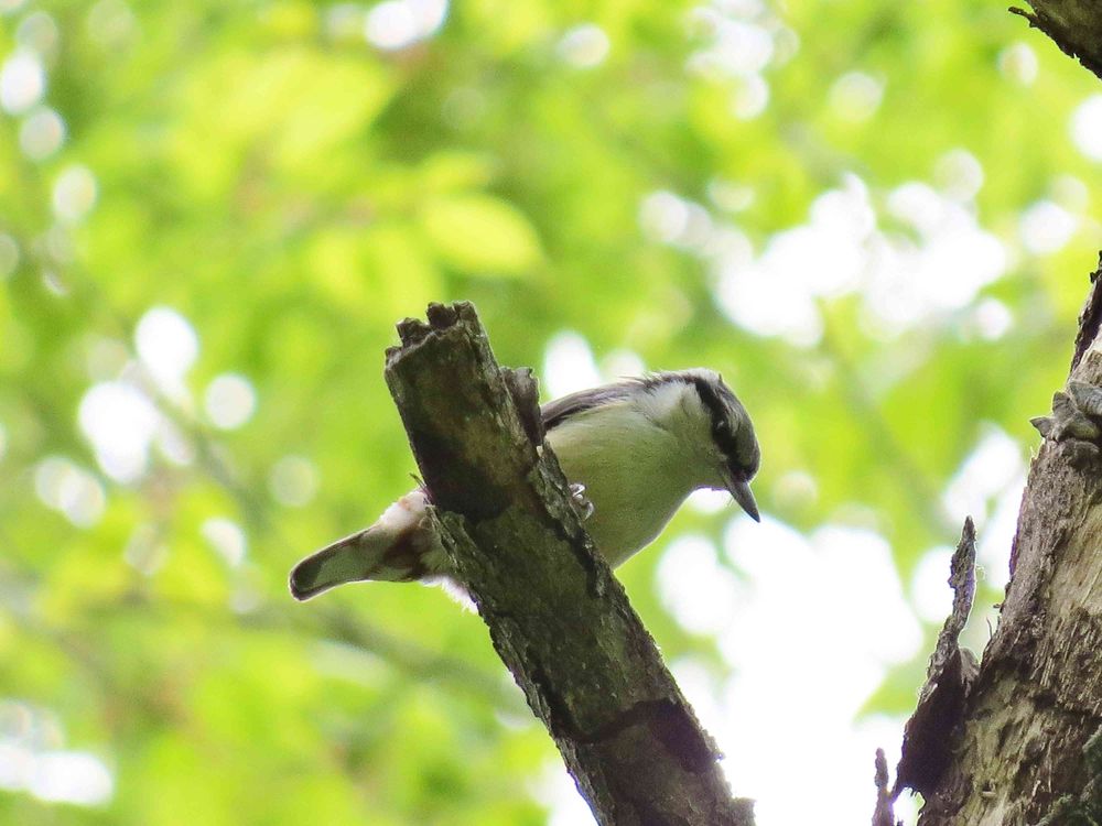 下がる時は、頭部を下に(身体を逆さまに)木の肌を突きながら幹を螺旋状に降りて行くのが特徴。(他の鳥は、こういう降り方は基本出来ない)