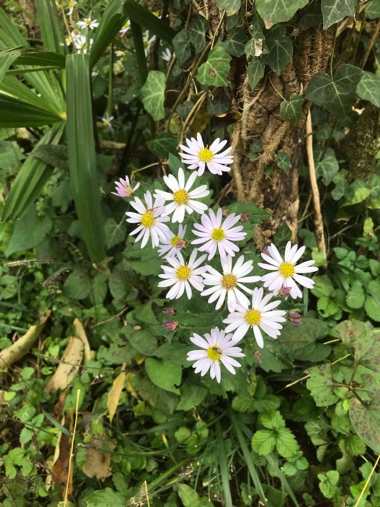 庭仕事をしていたら、車を止めて隣の草むらにやってきた知らないおじいさんが''とっていいですか?"と聞くので、"どうぞ。何を?"と聞いたら"野菊"と言ってパシャっと撮って去って行きました。ということで、私も。