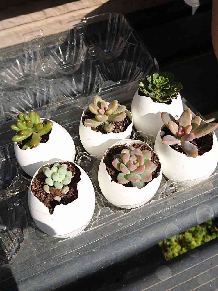 卵の殻にカットして挿しました🌱