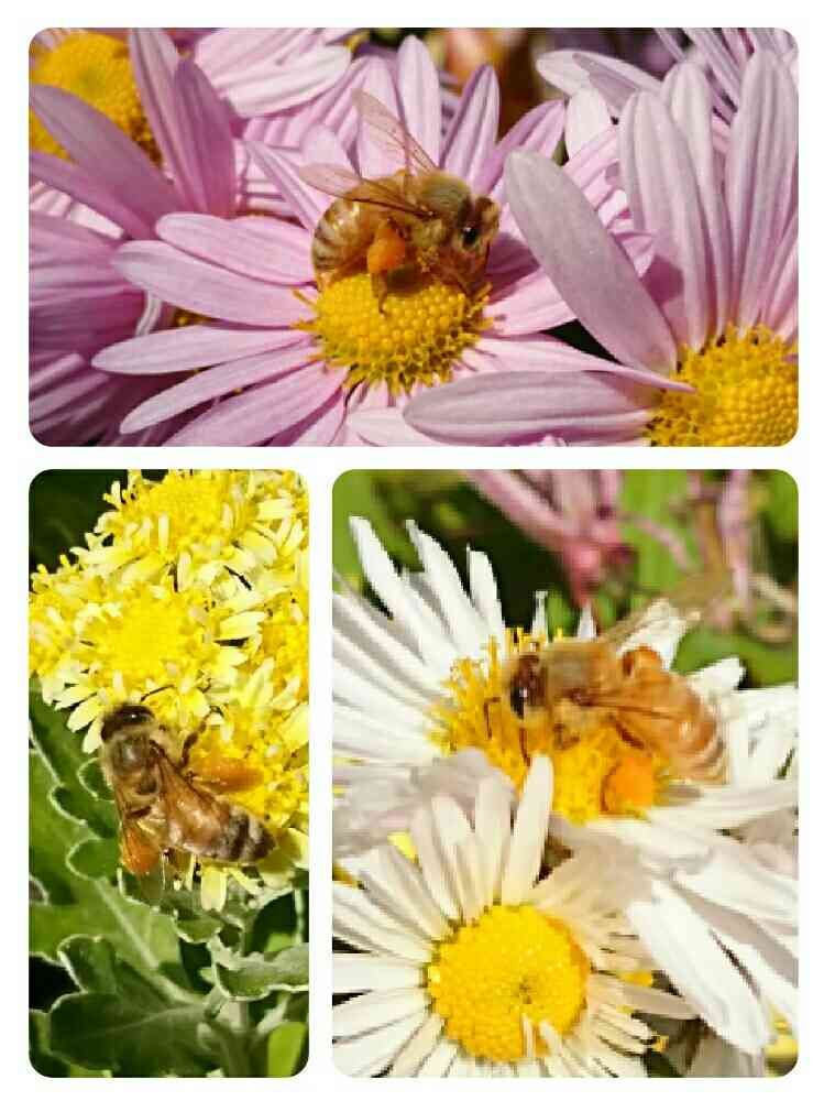 秋晴れの中、蜂たちが一生懸命に働いてます