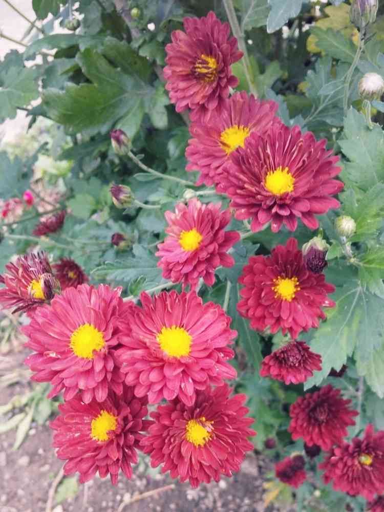 散歩中に見かけた赤いキク🌸🌸