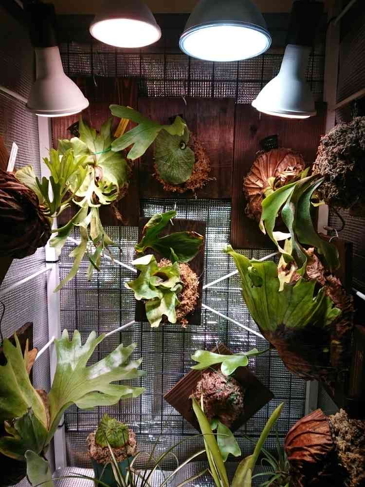 今晩は、育成ライト💡が4つですか😳ビカクシダって花も咲くんですか?部屋でも温室が必要なんて、大変な子達ですねぇ😅