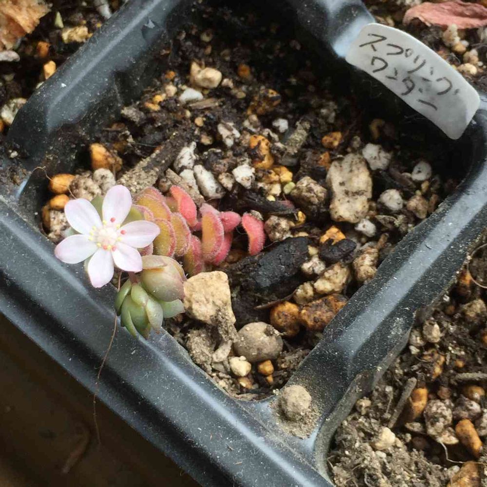 メルカリで買ったカット苗を養生させてたら、いつの間にか咲いてた✩︎⡱コザクラソウみたいで、ちっちゃくて可愛い😍