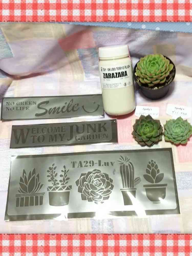 ステンシルシート 既製品の木箱にステンシルして多肉植物を植えようと考えてます💚