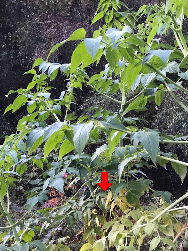 普通なら3メートルは超える丈が今は2メートルで抑えられてます。花芽が付きました。